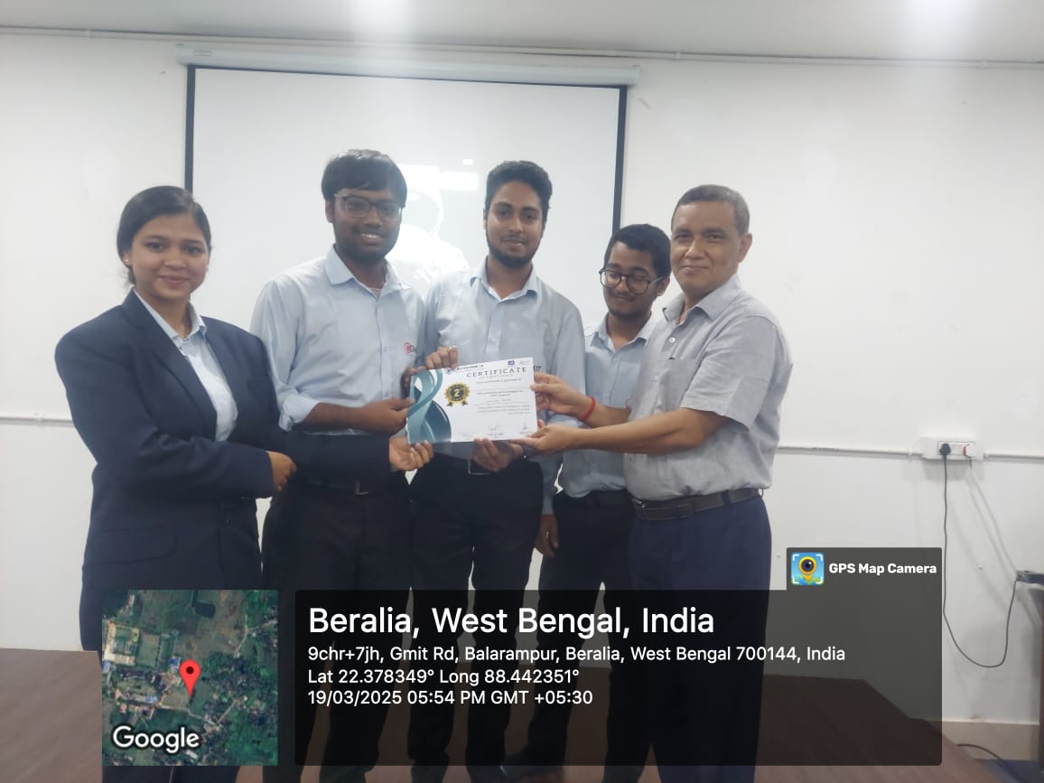 The Departments of CSE and CSBS at Gargi Memorial Institute of Technology successfully hosted an Internal Hackathon on 19th March 2025. Fifteen teams competed with innovative solutions, showcasing exceptional creativity and problem-solving skills. The event was inaugurated by our Principal, Prof. (Dr.) Narendra Nath Jana, and evaluated by a distinguished panel of HODs and senior faculty members.